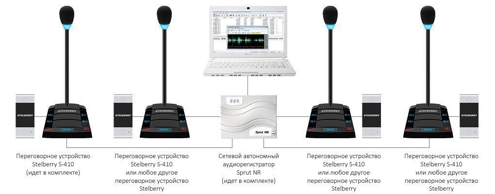 Пример применения STELBERRY SX-410 с дополнительными цифровыми микрофонами