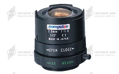 Предназначен для организации видеонаблюдения внутри помещений с постоянным уровнем освещенности. Формат 1/3". Фиксированное фокусное расстояние 2.3 мм. Ручное управление диафрагмой. Диапазон изменения диафрагмы F1.4-16C. Тип крепления объектива CS.