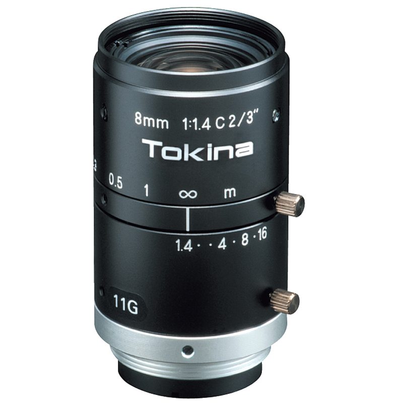TC0814-3MPG - Объектив с креплением стандарта C-Mount, фиксированным фокусным расстоянием 8 мм. Формат 2/3" для сенсоров с мегапиксельным разрешением. Подойдет для макросъемки. Горизонтальный угол обзора 57.3°. 3 MPix. Имеется ручная регулировка диафрагмы. Минимальная оптическая дистанция фокусировки 0.1 м.