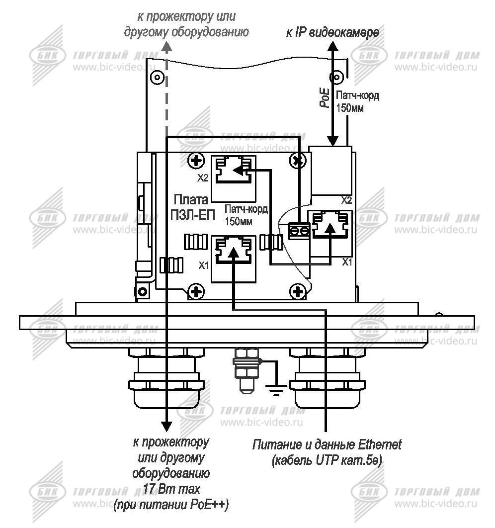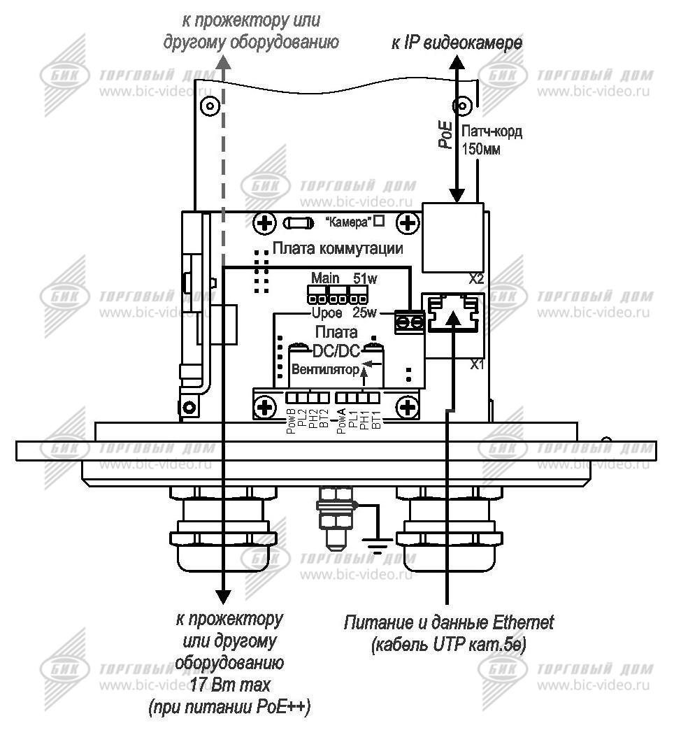 • преобразование питания IEEE 802.3bt (UPOE, PoE++, PoH) в питание IEEE 802.3af, IEEE 802.3at и 12 В DC для питания дополнительных устройств, например, прожектора, мощностью не более 12 Вт;