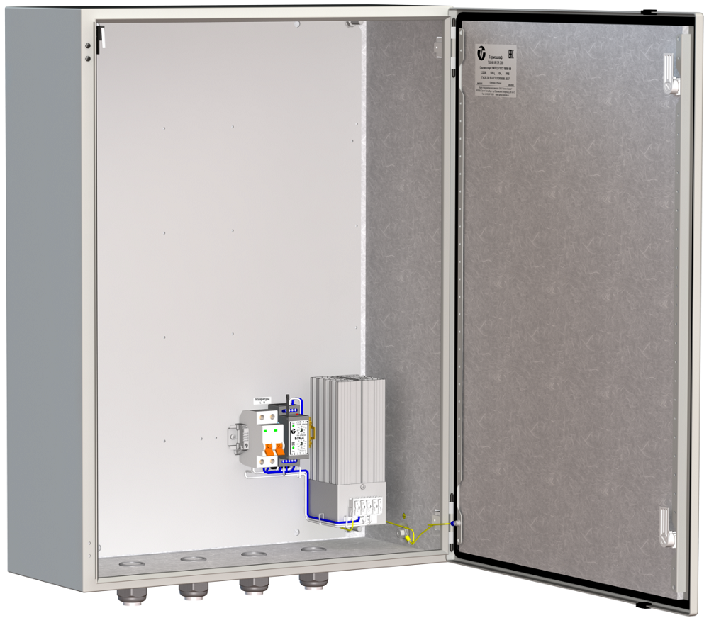 - обогревателем термошкафов ОТШ-160, оборудованным встроенным биметаллическим выключателем, ограничивающим температуру поверхности радиатора до +90°С;