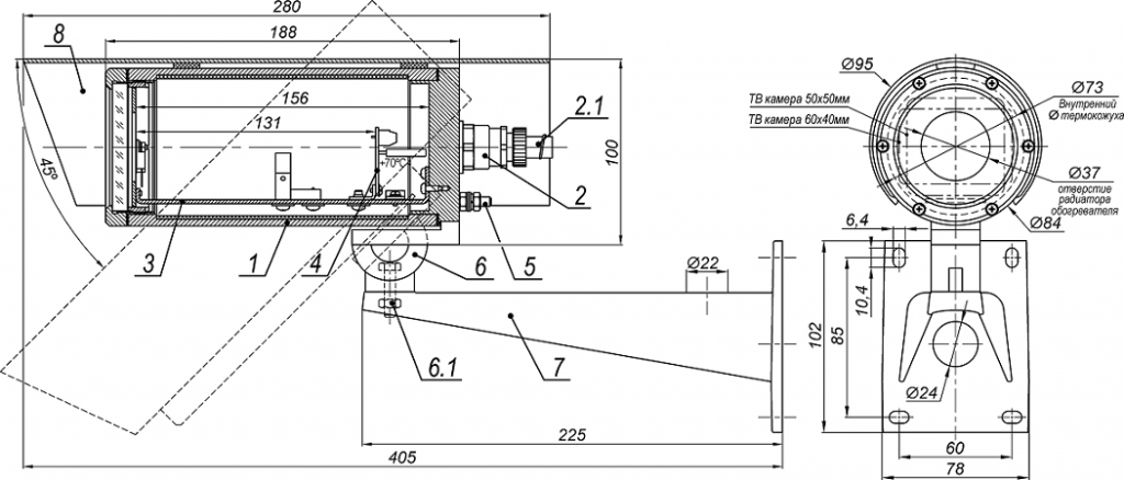Термокожух взрывозащищенный ТГБ-4М Ех IIC PoE+ предназначен для установки сетевых (IP) видеокамер Ethernet 10/100BASE-TX и защиты их от воздействия окружающей среды (влаги, пыли и отрицательных температур).