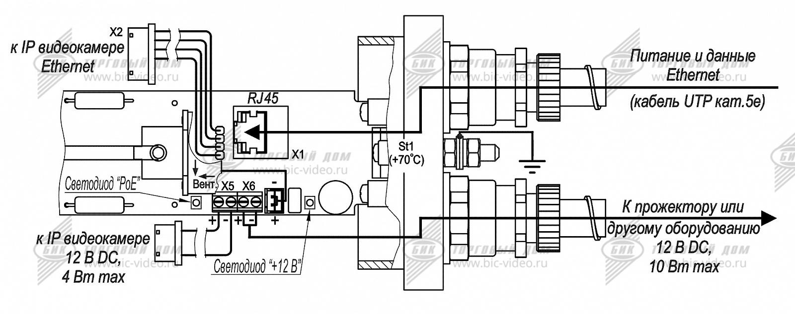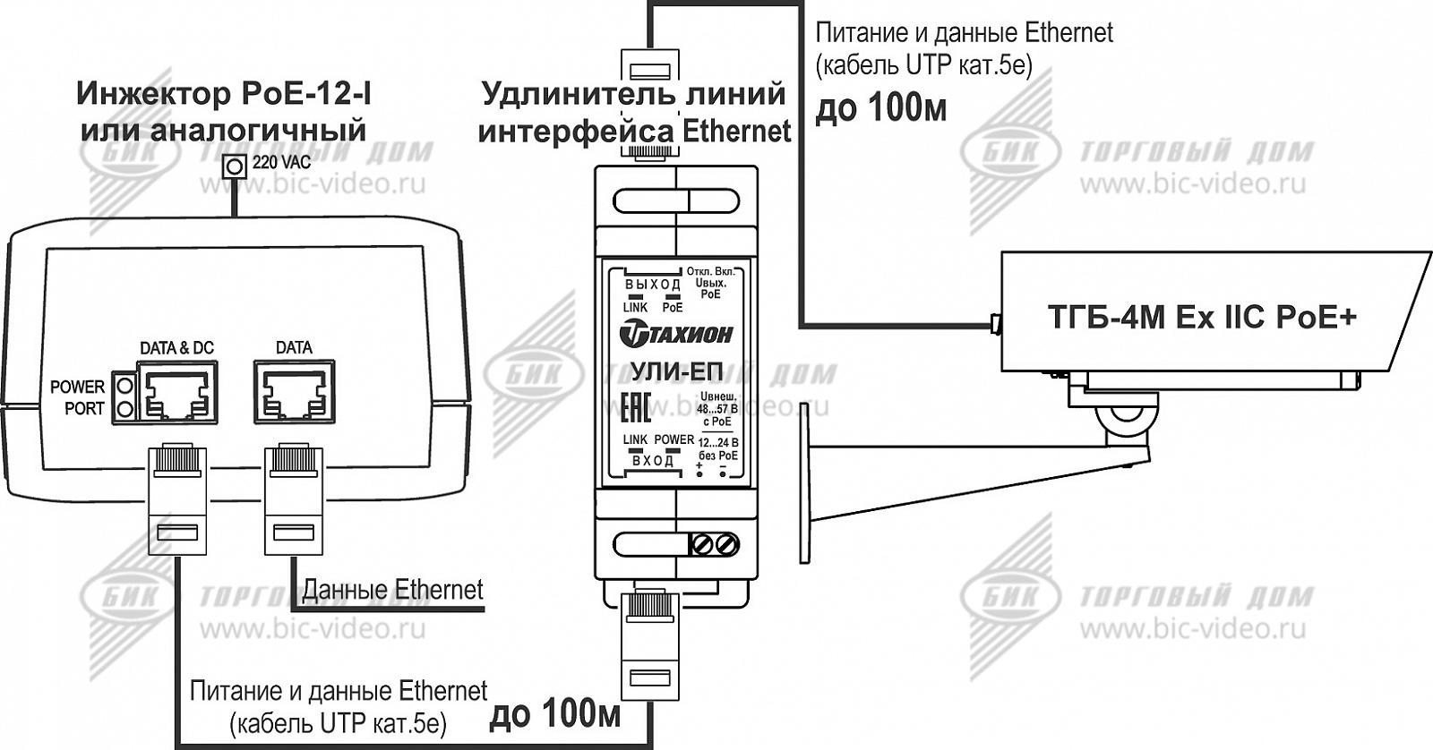 Питание термокожуха по стандарту IEEE 802.3at (PoE+).