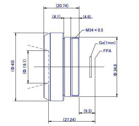 Объектив TH17V1810-34 предназначен для тепловизионных камер. Объектив высокой четкости с фокусным расстоянием f=18,8 мм. Спектральный диапазон составляет 8-12µm (LWIR). Оптика выполнена из сульфида цинка (ZnS), за счет чего данный объектив устойчив к различным погодным условиям и надолго сохранит прочность и интенсивность работы. Крепление объектива - M34x0,5 мм. Фокусное расстояние объектива можно регулировать в ручную, что позволяет произвести точную настройку.