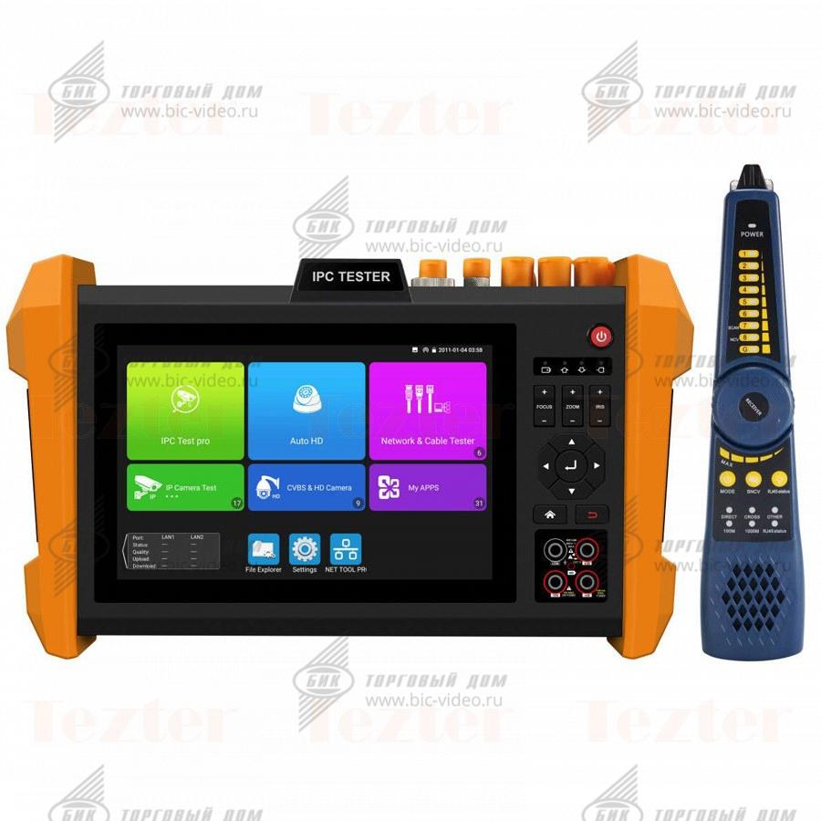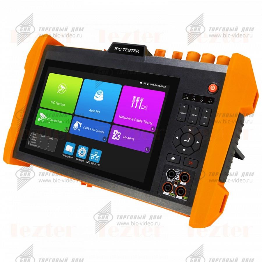 Универсальный 7-дюймовый сенсорный монитор-тестер AHD/CVI/TVI/CVBS/SDI и IP-видеосистем (Базовая модель + мультиметр + измеритель оптической мощности + тестер оптических линий + детектор кабельной трассы+ лазерный дальномер+встроенная камера). Разрешение экрана -1280х800. Операционная система Android. Поддерживаемые стандарты: ONVIF, 8Mp TVI , 8Mp CVI, 8Mp AHD, HD-SDI 1080p/EX-SDI 8Mp, HDMI 4K, VGA, IEEE 802.3af/at, RTSP, IEEE 802.11b/g/n, RS485 PTZ. Разъемы: 4хRJ45, HDMI вход, HDMI выход, VGA вход, 3xBNC, 2xFC, клеммы(RS485), Fiber(SFP), клеммы для щупов мультиметра, jack 3,5мм вход, jack 3,5мм выход, разъемы DC (12V/3A выход, клеммы 24V/2A, 12V/2А вход), USB-выход питания (5V/2A), слот MicroSD. Батарея Li-Pol 7,6V 7800mAh, Размеры (ШхВхГ): 276x44x163мм. Вес: 1,2 кг. Рабочая температура от -10° до 50°С.