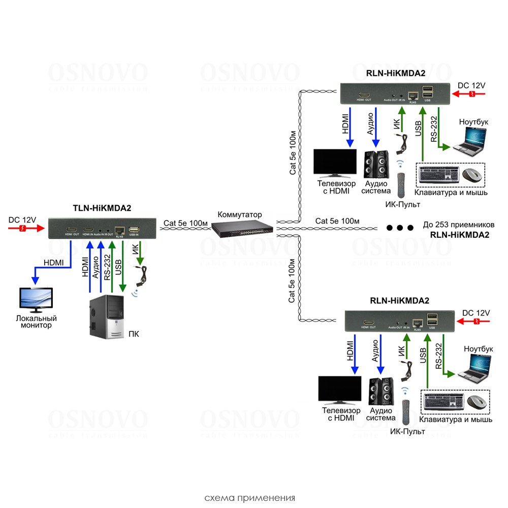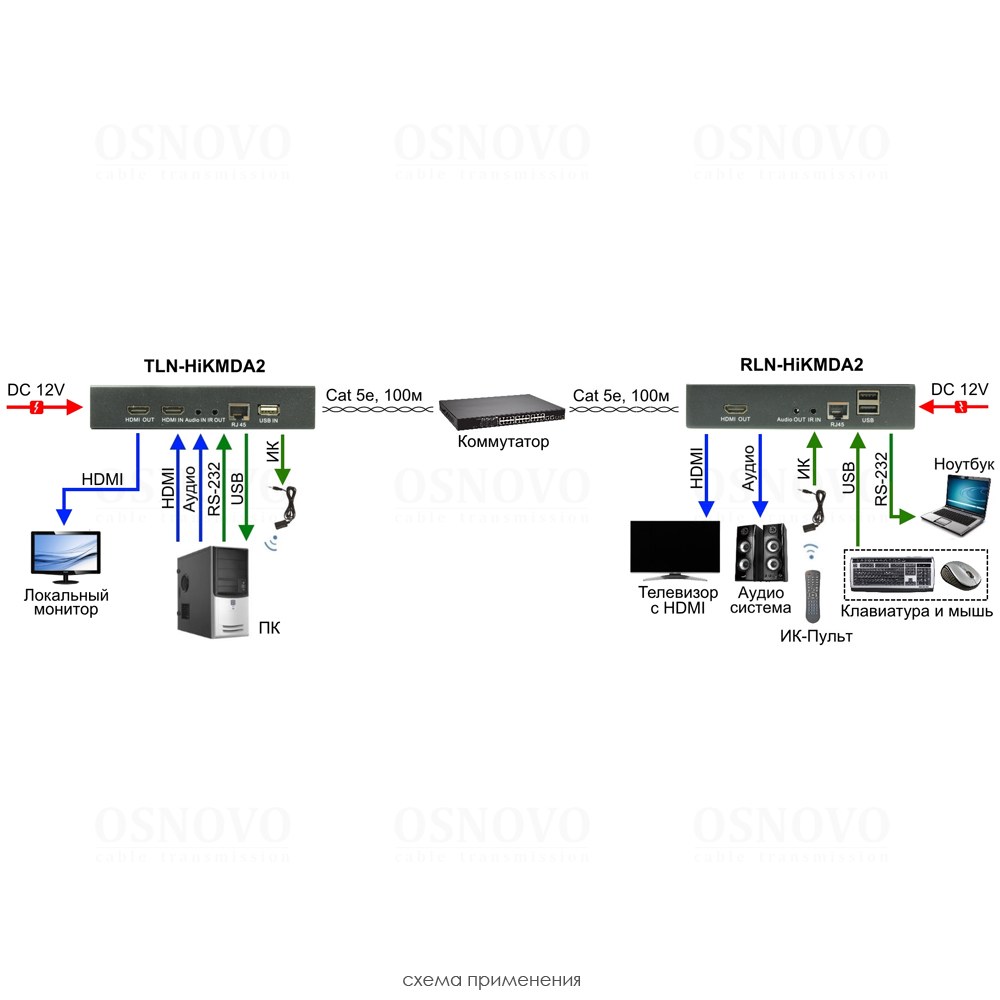 TLN-HiKMDA2+RLN-HiKMDA2 Комплект для передачи HDMI, USB, аудио, RS232 и ИК управления по сети Ethernet