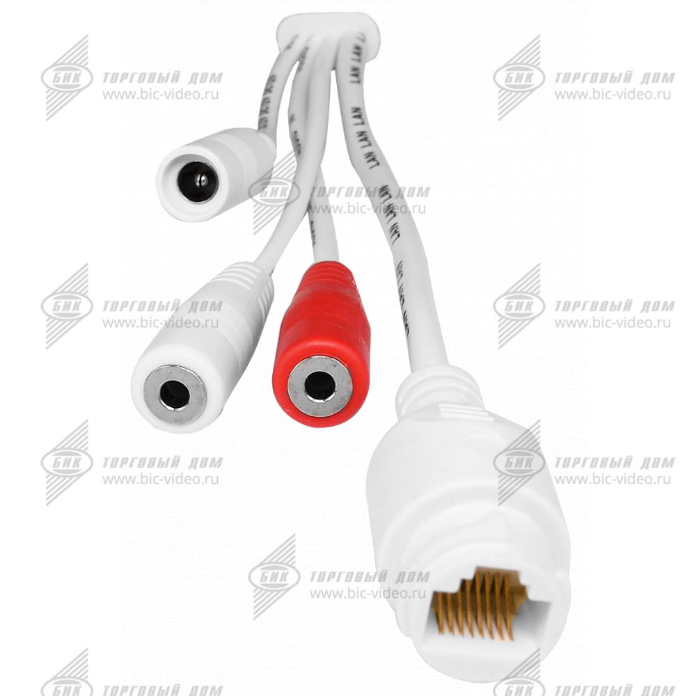 Камера построена на базе 1/2.8" CMOS-сенсора с чувствительностью 0,003 лк. при F1.8, максимальным разрешением 1920х1080 пикселей и частотой трансляции 25 Fps. Камера поставляется с фиксированным объективом 3.6 мм. Набор интерфейсов представлен: сетевым разъемом RJ-45, аудиовыходом и встроенным микрофоном, разъем для БП. Порт RJ-45 поддерживает функцию питания по сети Ethernet (PoE). Максимальное потребление энергии составляет 5.9 Вт. Модель снабжена набором функций для устранения дефектов изображения, вызванных разноконтрастным освещением и шумами в кадре - WDR (120дБ), 3DNR, BLC, Defog. Локальная запись на MicroSD карту объемом до 128 Гб( не входит в комплект). Камера заключена в миниатюрный корпус, защищенный от попадания внутрь влаги и пыли по стандарту IP66, IK10.