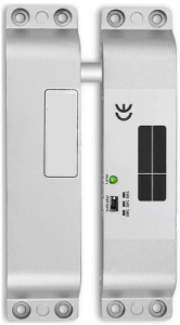 Имеет выход ("сухие контакты") положения двери для работы в составе СКУД. Универсальное питание от 12 до 24 вольт. Светодиодная индикация состояния замка.