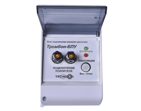 Блок подключения усилителя «Тромбон БПУ» (далее по тексту БПУ или Блок) разработан для расширения возможностей Системы оповещения и управления эвакуацией (далее по тексту СОУЭ) торговой марки «Тромбон» в области речевого вещания и музыкальной трансляции.