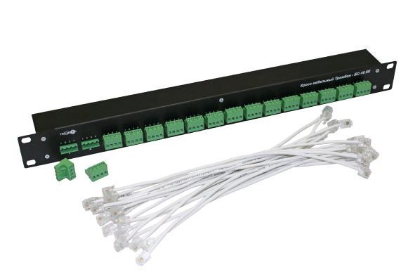 Кросс кабельный «Тромбон БС-16КК» (далее Кросс) является составной частью прибора «Тромбон –БС-16». Кросс предназначен для подключения к прибору «Тромбон – БС-16» кабелей связи с сечением жилы до 2,0 кв. мм. Количество подключаемых линий связи: 16, тип линии связи 4-х жильная, 483х42х44мм, 1,3 Кг