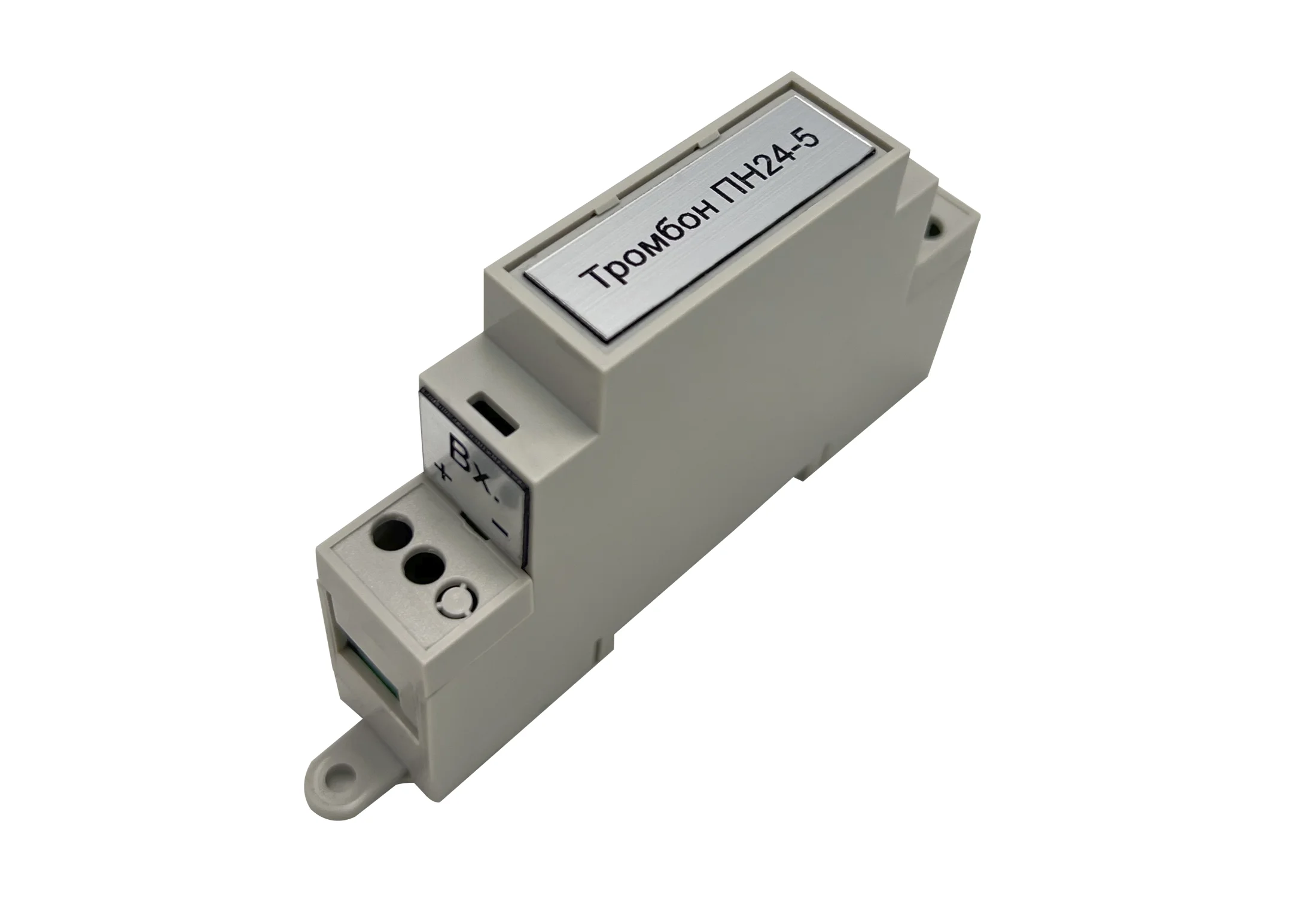 Преобразователь напряжения «Тромбон ПН24-5» (далее ПН или преобразователь) предназначен для питания устройств охранно-пожарной сигнализации и коммуникационного оборудования напряжением 5 В постоянного тока. ПН рассчитан на непрерывный круглосуточный режим работы с заданными выходными параметрами при его совместной работе с резервированными источниками типа «Тромбон БП-07», «Тромбон БП-14» и «Тромбон БП-21». Допускается применение для питания ПН резервированных источников питания (РИП) сторонних производителей при условии соответствия их выходных характеристик паспортным данным ПН и при условии наличия у них сертификата соответствия Техническому регламенту о пожарной безопасности (ТР).
