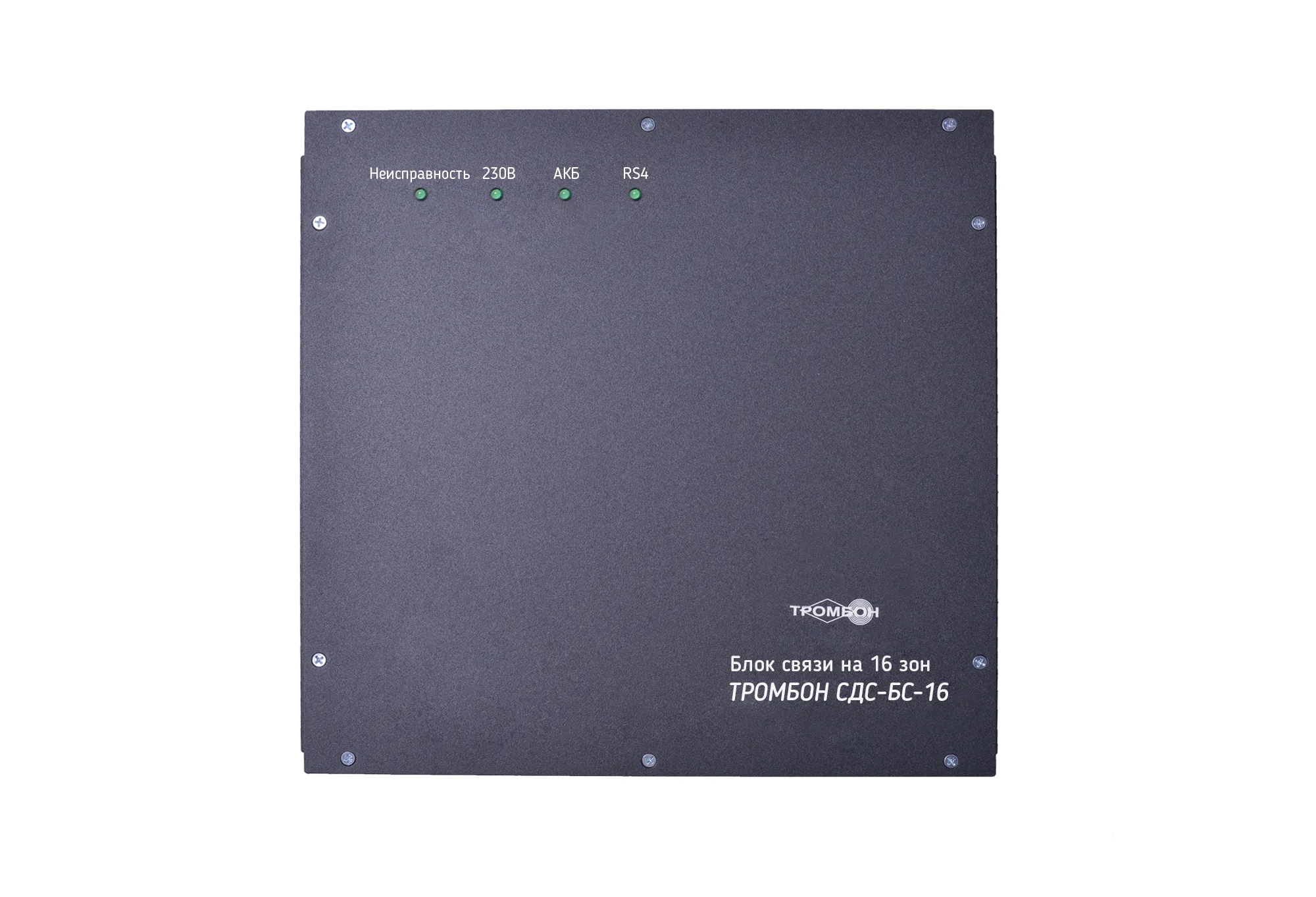 Блок связи на 16 зон «Тромбон СДС-БС-16» организует двухстороннюю речевую связь между диспетчером и зоной оповещения в составе системы диспетчерской связи «Тромбон СДС». Блок принимает и обрабатывает команды от Пульта диспетчера «Тромбон СДС-ПД» по установлению соединения между диспетчером и абонентом.