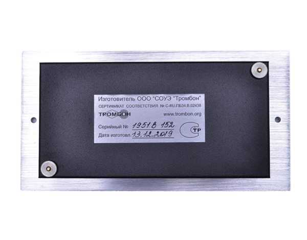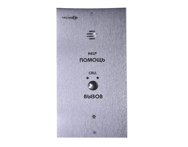Абонентское вызывное устройство «Тромбон СОРС–АВУ» исполнение В, (врезное исполнение), устанавливается в зонах оповещения и предназначено для подачи вызова на пульт диспетчера «Тромбон СОРС– ПД» и организации с ним двусторонней голосовой связи. Для организации связи с маломобильными группами населения к абонентскому вызывному устройству могут быть подключены устройства вызова в виде кнопки или стропы. Для информирования персонала о том, что необходима помощь, к абонентскому вызывному устройству подключается информационное свето-звуковое табло.