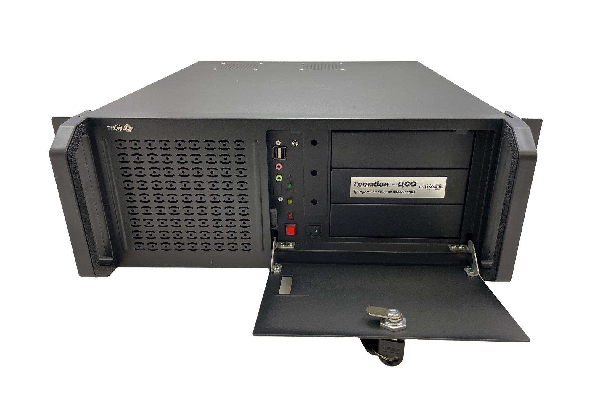 Блок управления и контроля «Автоматизированное рабочее место оператора» «Тромбон ЦСО» исполнение 2 совместно с сетевыми блоками управления «Тромбон БЧС» и «Тромбон БЧС-М» образует единый комплекс приборов, предназначенных для дистанционного контроля и управления локальными системами оповещения (СОУЭ), построенными на оборудовании «Тромбон». Связь АРМО с сетевыми блоками управления «Тромбон БЧС» и «Тромбон БЧС-М» осуществляется по IP сети через порт Ethernet. (Операционная система Linux 64-бита)