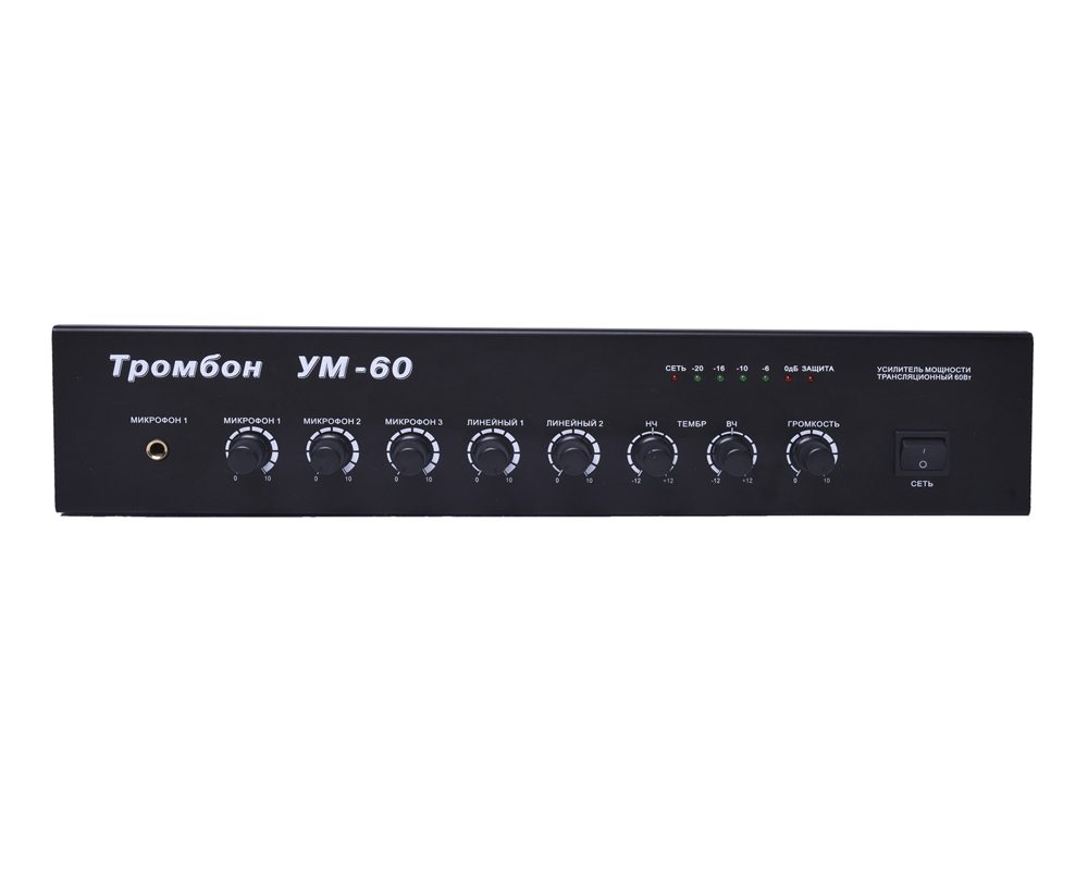 Усилитель малой мощности; питание от внешнего источника - 24В или 220В; мощность 60Вт; входов - 5 (три микрофонных, два линейных); выходное напряжение 30, 100, 120 В; частоты - 50-10000 Гц, регулировка тембра, световая индикация, встроенный селектор зон, габариты: 483х430х88 мм (2U), вес 10кг