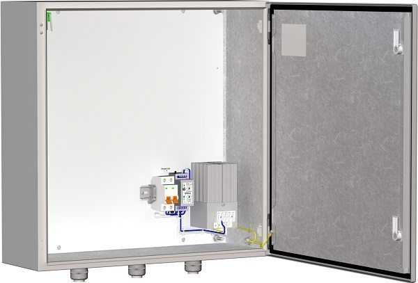 Термошкаф ТШН-1 предназначен для установки в нем телевизионного либо другого электронного оборудования и поддержания заданного температурного режима при эксплуатации этого оборудования в условиях морского климата, химических производств, автомагистралей, тоннелей и прочих агрессивных сред. Материал термошкафа - нержавеющая аустенитная сталь AISI 304. Степень защиты IP66. В состав шкафа входит блок управления климатом БУК-4 для управления обогревателями и холодным запуском аппаратуры, установленной в термошкафу и системой обогрева, тамперный контакт от несанкционированного доступа, обогреватель ОТШ-160 с биметаллическим выключателем, ограничивающим температуру поверхности радиатора до 90°С.
