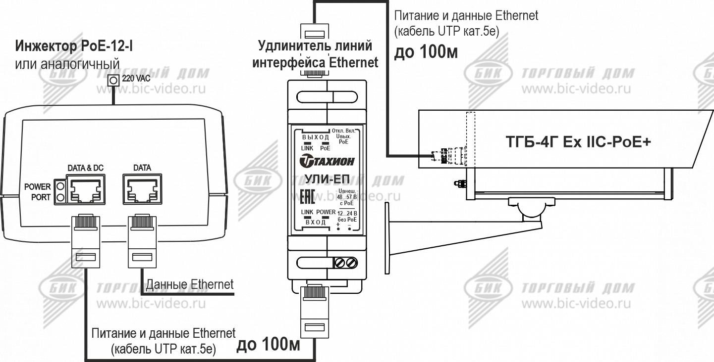 Видеокамера в термокожухе ТГБ-4Г Ex IIC. Класс взрывозащиты 1Ex db IIC T6 Gb X / Ex tb IIIC T80°C Db X. Степень защиты IP66/IP68. Рабочий объем 70х70х215 мм. Габариты, мм: Lнар. 420, øнар. 131. Питание термокожуха по стандартам: IEEE 802.3at (PoE+) (30Вт), Passive PoE 48…56V (30Вт). Питание видеокамеры по стандарту IEEE 802.3af (PoE). Мощность обогрева до хол. запуска/после хол. запуска 22/15 Вт. Диапазон рабочих температур -60° ÷ +50°C. Холодный пуск. Максимальная потребляемая мощность (включая IP-видеокамеру) 25 Вт. В комплекте настенный кронштейн, солнцезащитный козырёк. BHZ-1030V2-LAN, разрешение 1920х1080 (2 Мр); чувствительность 0,1 лк (цвет)/0,01 лк (ч/б); 30хZoom (4,3-129 мм), автофокусировка.