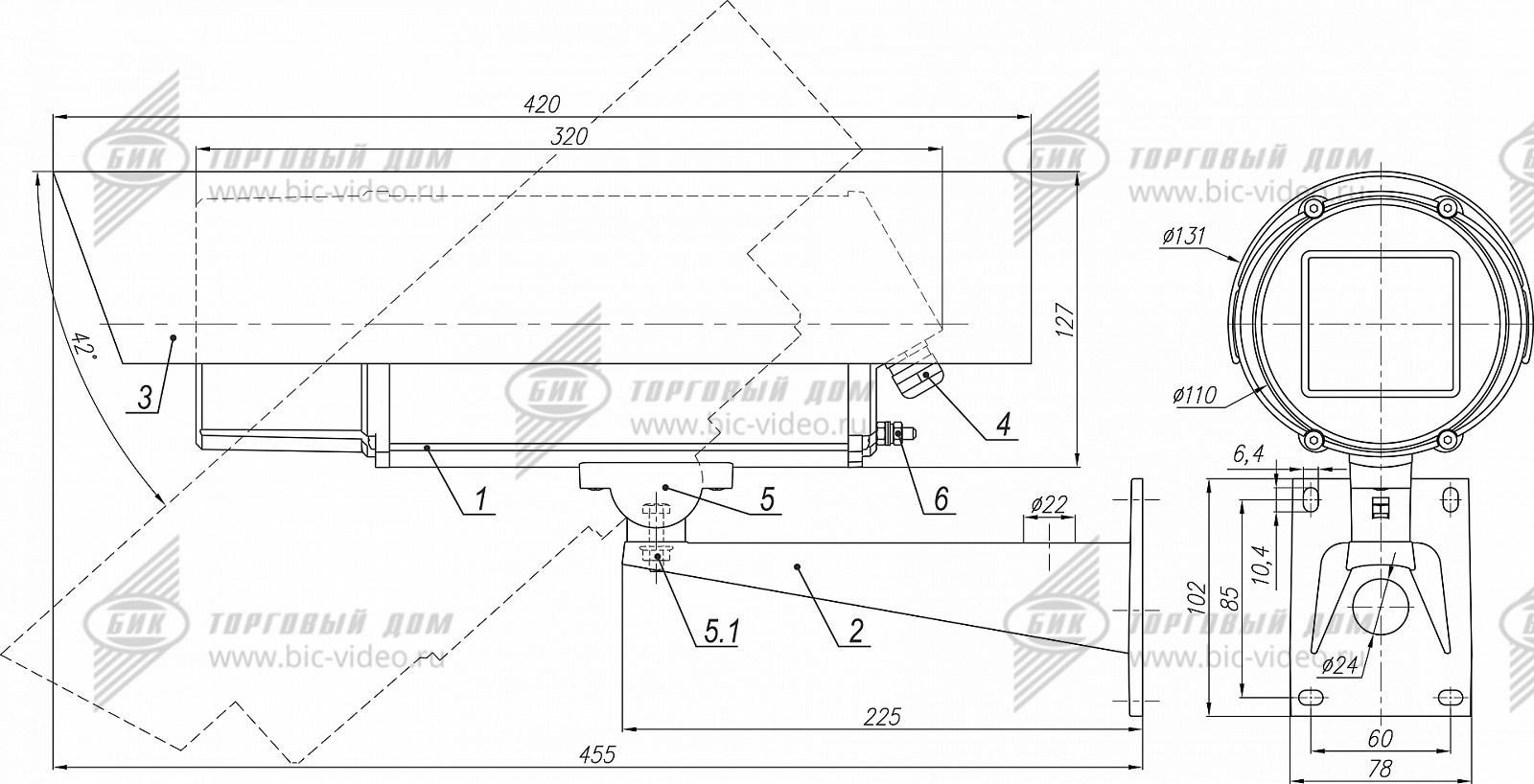 Видеокамера в термокожухе ТГБ-7-24/12. Степень защиты IP66/IP68. Рабочий объем 70х70х215 мм. Габариты, мм: Lнар. 420, øнар. 131. Напряжение питания термокожуха 24V DC/AC. Напряжение питания видеокамеры 12VDC. Мощность обогрева 25/17 Вт. Диапазон рабочих температур -60°С/-40°С ÷ +50°C. Холодный пуск. Максимальная потребляемая мощность 37/27Вт. В комплекте настенный кронштейн, солнцезащитный козырёк. Камера LTV-2CNS50, разрешение 2592x1944 (5 Мр); чувствительность 0.006 лк (цвет, F1.2, АРУ вкл.)/0.009 лк (цвет, F1.6, АРУ вкл0.005 лк (ч/б, F1.4, АРУ вкл.); объектив 2,8-12 мм.