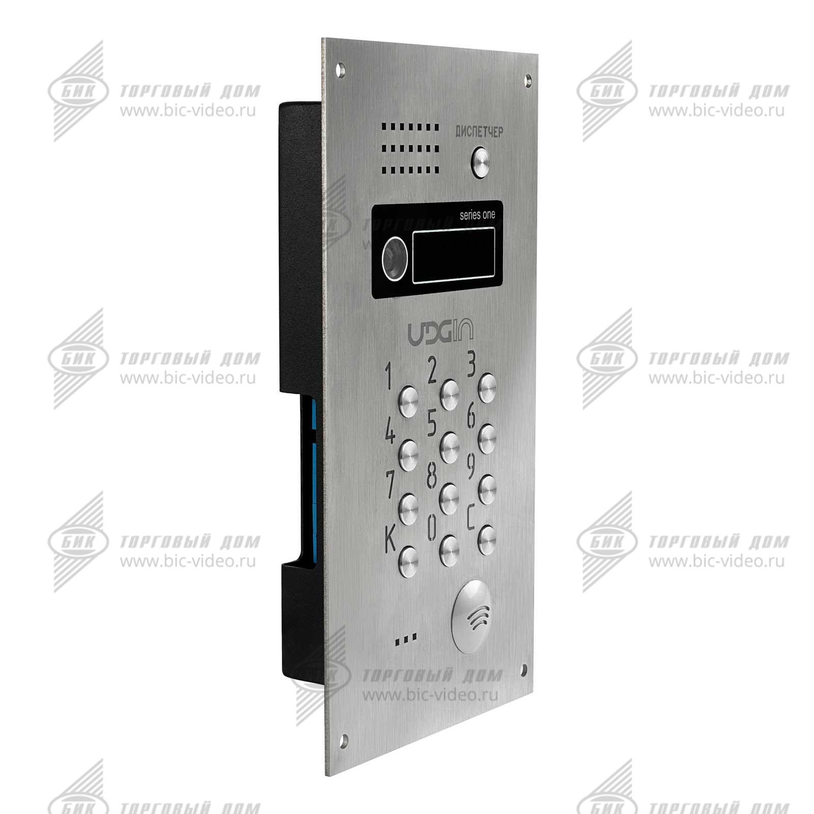 UDG/SO-MF-V/IP - Многоабонентский модуль вызова с встроенным считывателем ключей Mifare для совместной работы с модулем управления UDG/UM - 255. Встроенная цветная двухформатная камера IP/PAL с разрешением 2 Мр (1920х1080р), угол обзора 86°, функция "день-ночь". Белый светодиодный дисплей, есть кнопка "диспетчер".