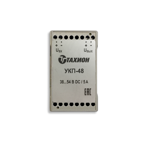 Устройство компенсации временного прерывания УКП-48 предназначено для поддержания на выходе блоков переключения питания с зарядным устройством БПЗУ-48 (или аналогичного устройства) постоянного выходного напряжения 48В в момент переключения контактов их реле, т.е. сведение к нулю времени прерывания питания при переходе на питание от АКБ. Устройство выполнено в пластмассовом корпусе с креплением на 35 мм DIN-рейку.