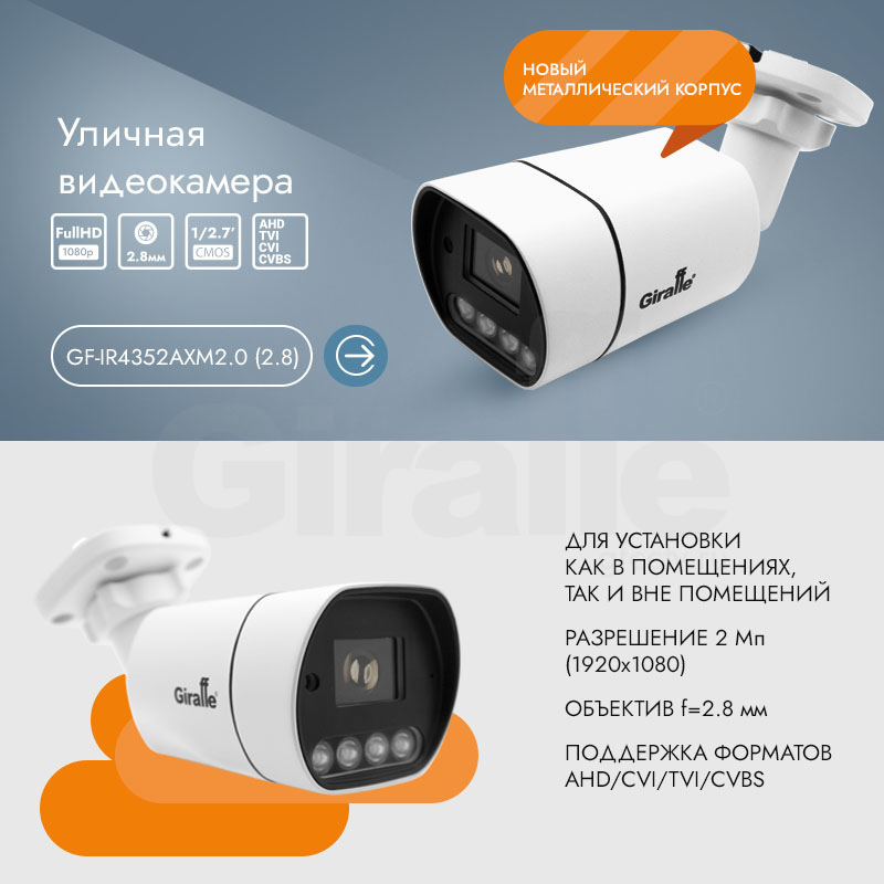 GF-IR4352AXM2.0 (2.8) поддерживает несколько телевизионных форматов аналогового HD видеосигнала: AHD/TVI/CVI/CVBS. Применяемая технология позволяет осуществлять передачу видео высокого качества и сигналов управления по коаксиальному кабелю на расстояние до 300 м.