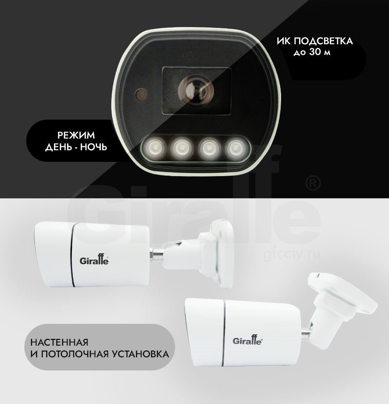 Видеокамера имеет Фиксированный объектив с фокусным расстоянием 2.8 мм и встроенную ИК подсветку с дальностью до 30 м.