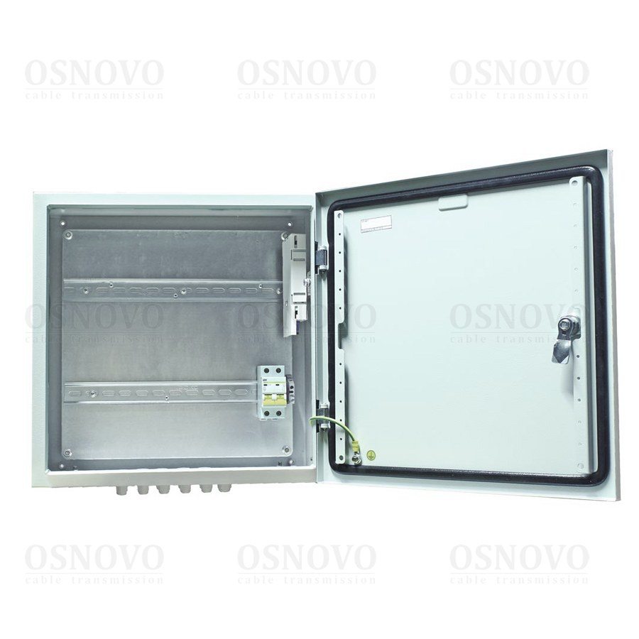 Уличная станция с оптическим кроссом. В основе шкаф из нержавеющей стали с классом защиты IP66. Доступное место под установку оборудования на встроенные DIN-рейки: верхняя - 310мм, нижняя - 250мм. Может поставляться со встроенным оборудованием по заказу. Материал: нержавеющая сталь. Размеры (ШхВхГ): 400x400x210мм. Рабочая температура: -50…+50°С.