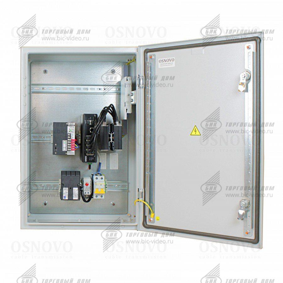 Уличный коммутатор с термостабилизацией и грозозащитой портов PoE на базе уличной станции OSNOVO OS-46T1. Порты: 6 x FE (10/100Base-T) с PoE (до 30W) + 2 x FE (10/100Base-T) с PoE (до 60W) + 1 x GE (10/100/1000Base-T) + 2 x GE SFP (1000Base-X). Суммарный бюджет PoE до 240W. Режим антизависания и режим удлинения линий связи по 8-ми PoE портам до 250м (скорость до 10Мбит/с). Металлический шкаф (ШxВxГ): 400х600х210мм, питание AC195-265V, оптический кросс. Рабочая температура (температура окружающей среды): -60…+50°С, температура внутри станции -10…+55°С, исполнение IP66.