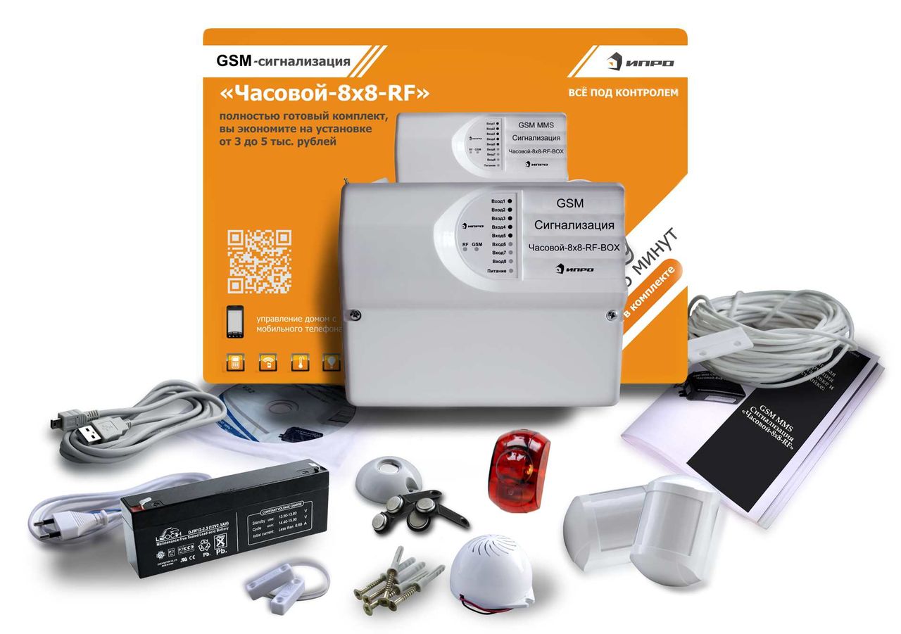 GSM сигнализация Умный часовой 8х8-RF BOX комплект ПРОФИ (проводной комплект для дома). При покупке комплекта вы приобретаете уже полностью готовое решение.