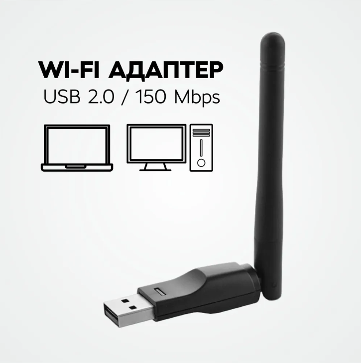 Wi-Fi адаптер MT7601 - это специальное устройство, предназначенное для беспроводного интернет соединения, обладающее функцией IPTV и YouTube. Предназначен для подключения компьютеров , ноутбуков, ресиверов, приставок Т2, медиаплееров, современных спутниковых приставок Триколор ТВ. Wifi адаптер обеспечит передачу данных со скоростью до 150 Мбит, обладает чипсетом MT7601 и оснащен разъемом USB 2.0. Устройство способно как передавать данные, так и принимать их. Встроенная антенна позволяет увеличить дальность действия Wi-Fi адаптера.