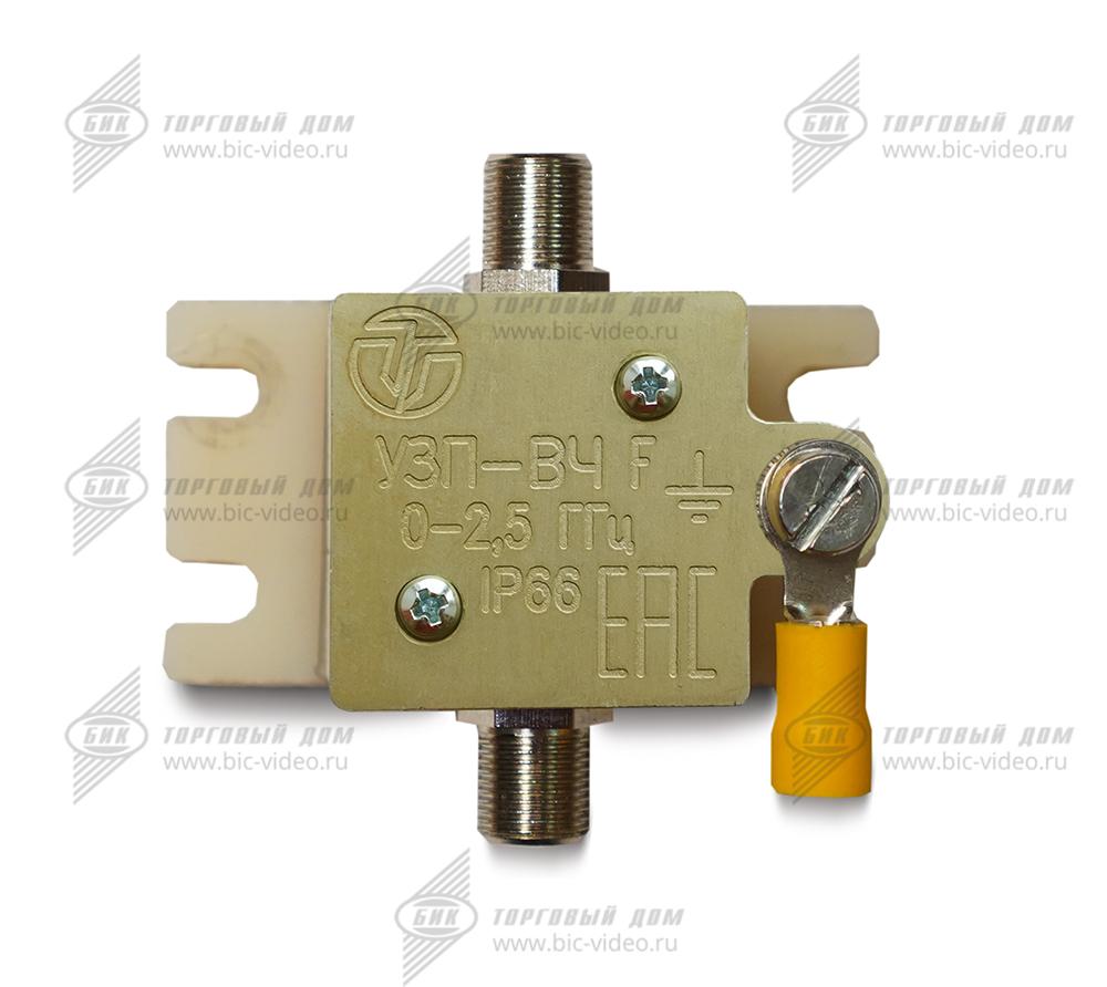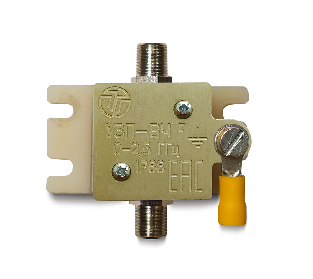 Устройство защиты высокочастотных цепей УЗП-ВЧ F предназначено для защиты оборудования, подключённого к коаксиальной линии с волновым сопротивлением 75 Ом, от наведенных напряжений, вызванных электромагнитными импульсами высоких энергий (грозовыми, электростатическими разрядами и т.д.). Устройство выполнено в экранированном алюминиевом корпусе. Основание устройства изготовлено из диэлектрика для исключения образования «земляных петель» и случайного попадания потенциала на корпус в местах установки. Степень защиты корпуса IP66.