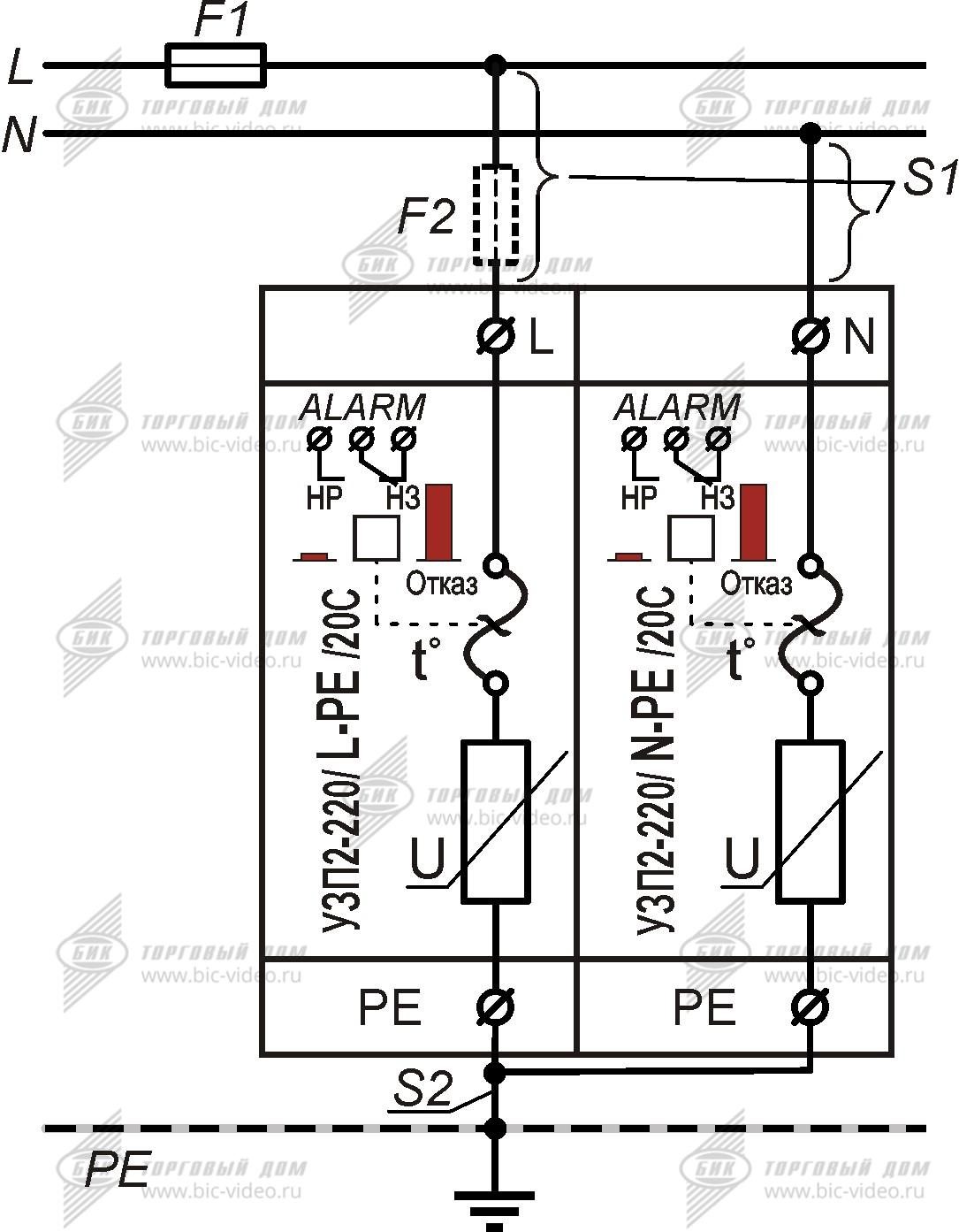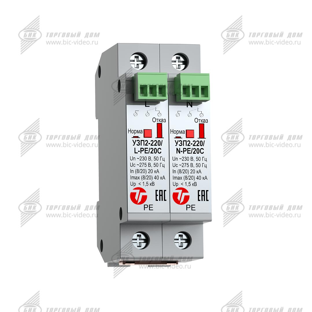 Устройство защиты электрооборудования распределительных сетей 220 (230) В AC от импульсных перенапряжений, комплект УЗП2-220К/LN-PE/20С предназначено для защиты оборудования, подключённого к линиям электропитания переменного тока 220 (230) В, от наведенных напряжений, вызванных электромагнитными импульсами высоких энергий (грозовыми, электростатическими разрядами и т.д.).