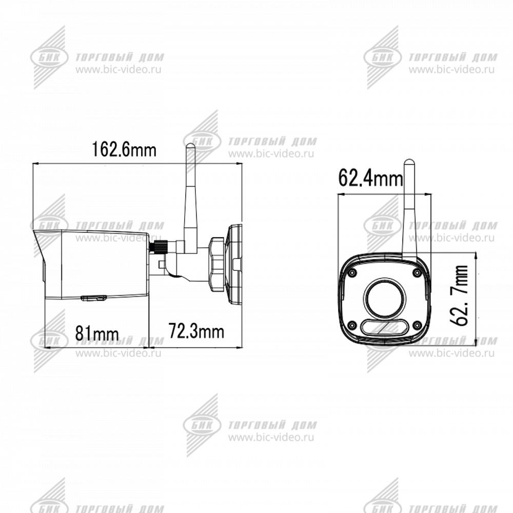 Габариты (Д × Ш x В): 162.6 × 62.4 × 62.7 мм.; Материал: Пластик / Металл; Вес камеры: 250г; Гарантия: 1 год