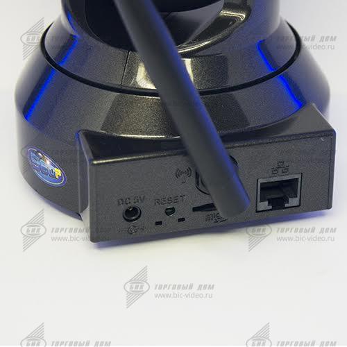 Матрица 1/3" CMOS. Разрешение камеры 960р. Объектив с фиксированным фокусным расстоянием f=3.6 мм. Сжатие видео происходит с помощью стандарта H.264. Угол обзора 73°, также камера имеет функции поворота в горизонтальной и вертикальной плоскостях. Камера оснащена двусторонней аудиосвязью. Поддержка карты памяти MicroSD объемом до 64 Гб. Установлен детектор движения. Управляется с помощью мобильных телефонов на базе iOS/Android. Протоколы RTSP и Onvif.