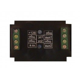 ВУ-1/2Т - усилитель-разветвитель видеосигнала. Плата в термотрубке с колодками. 1вход - 2выхода, I – 30 мА. Питание 12 В. Размеры корпуса 50х39х18 мм.