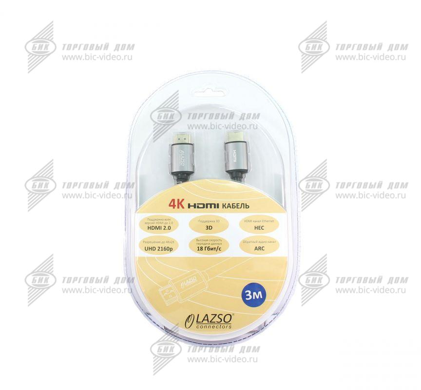 Кабель для передачи сигналов HDMI 2.0, максимальное разрешение 4Кх2К, 60Hz (4:4:4). Скорость передачи данных до 18Гбит/с. Обеспечивает передачу Fast Ethernet. Поддержка 3D и ARC (реверсивный аудиоканал, Audio Return Channel). Длина 3м. Круглое сечение. Тип разъёмов А-А (вилка-вилка), 19 pin, позолоченные контакты, проводник из бескислородной меди (OFC, Oxygen Free Copper). Оплётка из ПВХ и нейлона. Цвет чёрный. Упаковка: блистер.