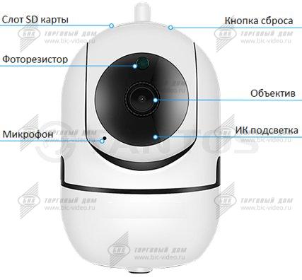 Видеокамера Wi-Fiкупольная наклонно - поворотная с ИК подсветкой мегапиксельная, 1280х720, 1/4” сенсор 0.4 Люкс (день) 0 Люкс (ночь с ИК подсветкой), автоматическое слежение за движущимися объектами, детектор движения, встроенный микрофон / встроенный динамик, поддержка microSDкарт, облачное хранение, мобильное приложение для iPhone, Android, веб интерфейс отсутствует. Возможно использовать камеру для контроля за ребенком.