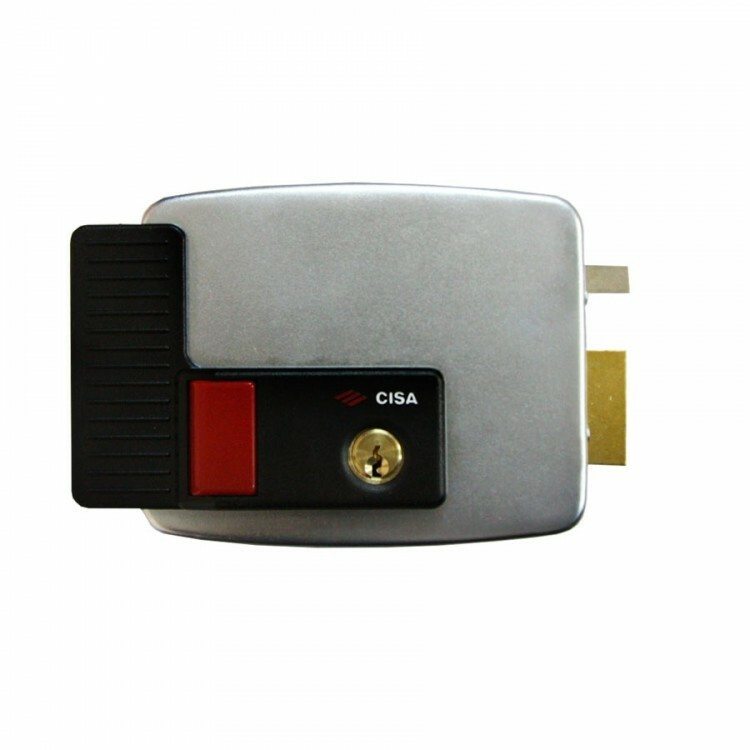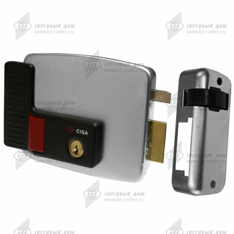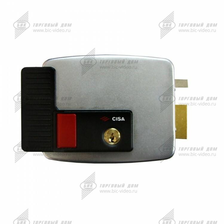 Накладной электромеханический замок CISA 11.931.60.1 с автоматически блокирующейся защелкой, предназначен для левых дверей внутреннего открывания. Внешний цилиндр жестко зафиксирован на корпусе, что упрощает процесс установки замка на металлические двери.