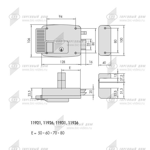 Накладной электромеханический замок CISA 11.931.60.3 с автоматически блокирующейся защелкой, предназначен для правых дверей наружного открывания. Внешний цилиндр жестко зафиксирован на корпусе, что упрощает процесс установки замка на металлические двери.