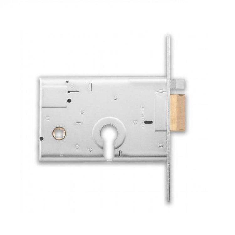 Врезной электромеханический замок CISA 14.017.60.2 имеет электрически управляемую защелку: взводной и запорный ригели.