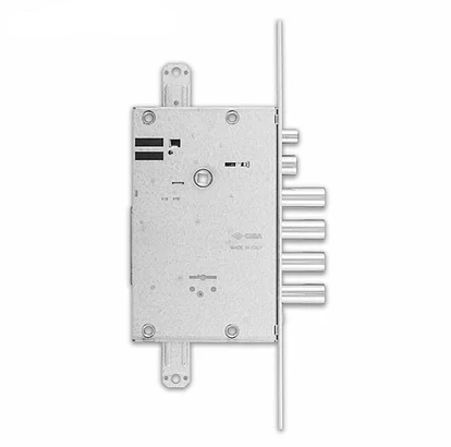 Врезной сувальдный электромеханический замок CISA 17.535.28.0 серии Revolution с электроуправляемой защелкой, имеет 4 цилиндрических механических запорных ригеля, высокую механическую прочность и возможность установки в укрепленные и бронированные двери, обеспечивая управление доступом и надежное запирание в ночном режиме.