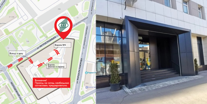 Прием и выдача оборудования (сервисный центр/склад). Вход через арку со стороны ул. Метростроевцев.