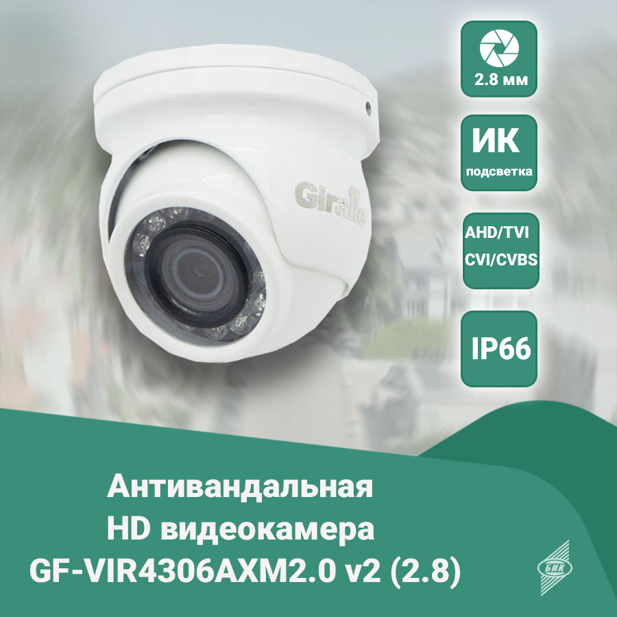 Антивандальная HD видеокамера GF-VIR4306AXM2.0 v2 (2.8) доступна к заказу.