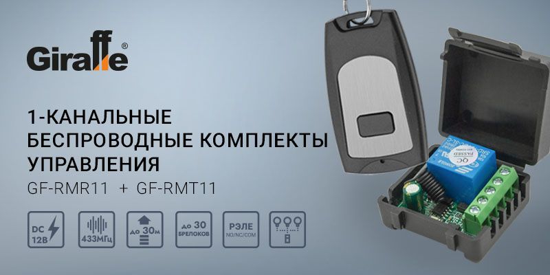 1-канальный передатчик (брелок) GF-RMT11 в комплекте с приемником GF-RMR11 предназначен для дистанционного управления по радиоканалу различными приборами и устройствами. Например, замками, воротами, шлагбаумом, сигнализацией, жалюзи, освещением, и т.п.