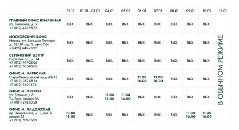 Дорогие друзья и коллеги! С праздником Вас! В этот Новый Год мы как всегда с Вами и наши магазины открыты для Вас. Ознакомьтесь пожалуйста с графиком работы в праздничные дни: