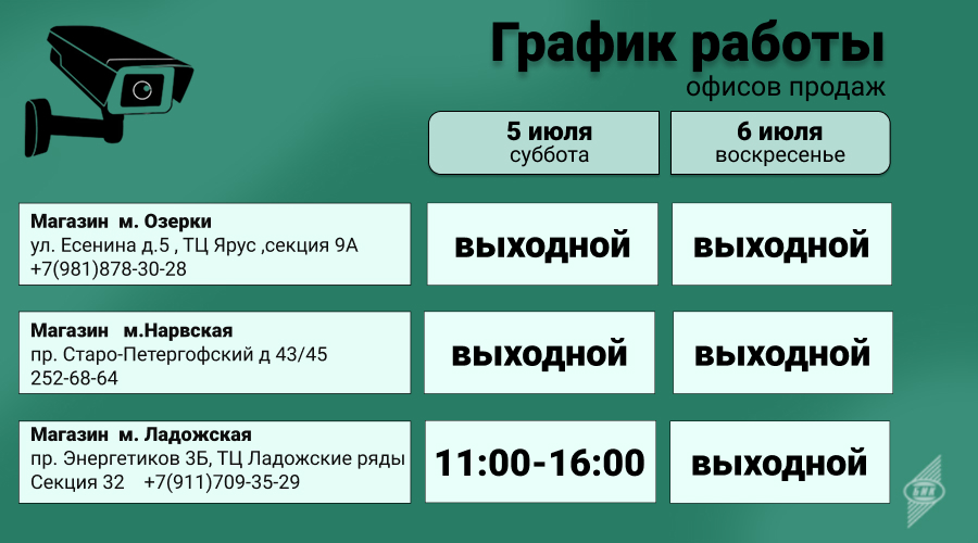 График работы офисов продаж 05.07.25 и 06.07.25