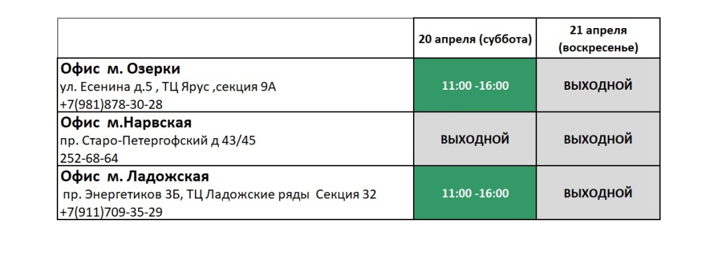 ❗ Изменение режима работы офисов 20 - 21.04.2024
