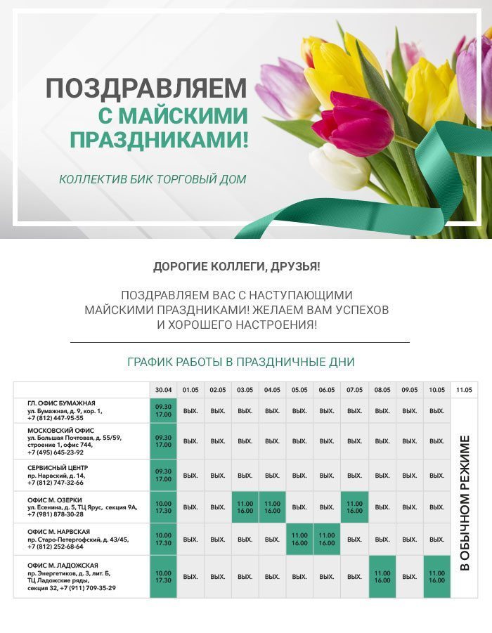Изменения в графике работы в праздничные дни