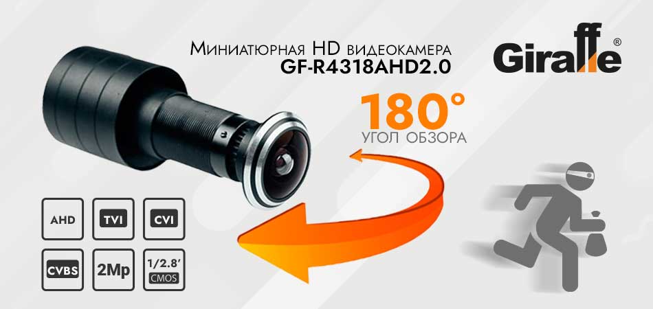 Миниатюрная HD видеокамера GF-R4318AHD2.0 выполнена в корпусе типа "видеоглазок" с классом защиты IP41 и предназначена для установки камеры в дверь. Конструктивно она состоит из стеклянной ударопрочной линзы в металлическом ободе и металлического цилиндрического корпуса. Видеокамера может быть настроена для установки в двери, толщина полотна которых находится в диапазоне от 40 мм до 60 мм.