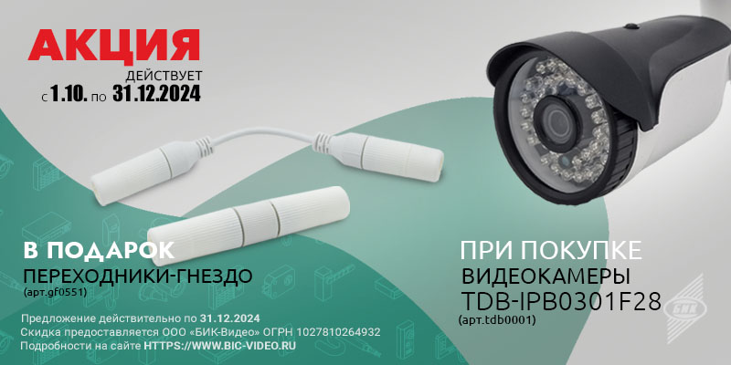 При покупке IP-видеокамера TDB-IPB0301F28 в подарок вы получаете переходник RJ-45.